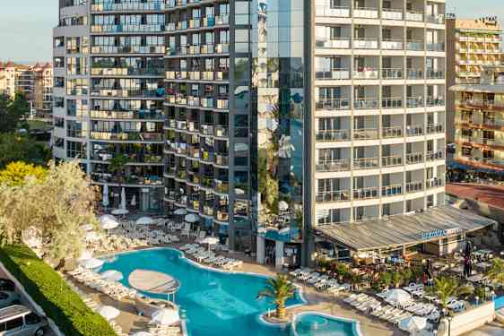 Hotellet har også flere restauranter, hvoraf to ligger øverst i bygningen med udsigt over Sunny Beach. Vil du se lidt mere af Bulgarien, ligger den maleriske by Nessebar blot en kort køretur væk. Nessebar består af en ny og en gammel del og byder på hyggelige restauranter, smalle stræder og charmerende folkeliv.