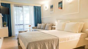 På Flamingo kan du vælge mellem værelser og lejligheder med køkkenniche, hvilket er perfekt for dig, der gerne vil have mulighed for at lave din egen mad i ferien. Ved siden af hotellet er der også et supermarked, hvor du kan købe det mest nødvendige.