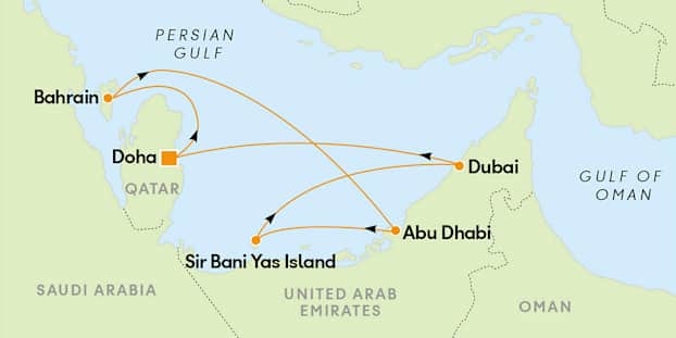 Bahrain, Abu Dhabi & Sir Bani Yas Island - hotelovernatning i Doha