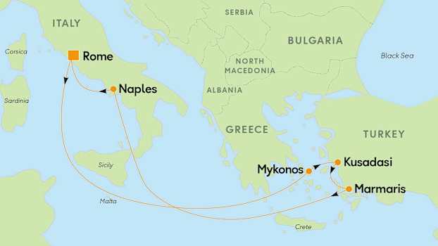 Mykonos, Kusadasi, Marmaris & Napoli - hotelovernatning i Rom