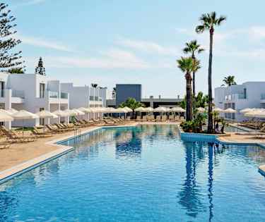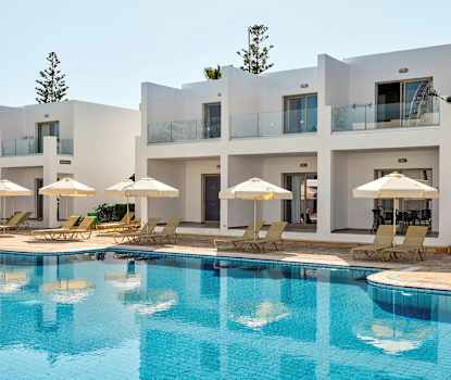 Atlantica Panthea Resort har et stort og dejligt poolområde med børnepool, liggestole og parasoller.