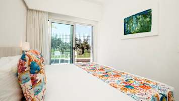 Pæne og lyst indrettede værelser og lejligheder. Lejlighederne ligger i bungalower spredt ud over hotelområdet og dobbeltværelserne ligger i hovedbygningen.