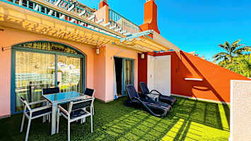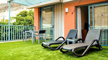 - Balkon eller terrasse (11 m²). På balkonerne findes en bruser og liggestole - bestemt lejlighed kan ikke garanteres.