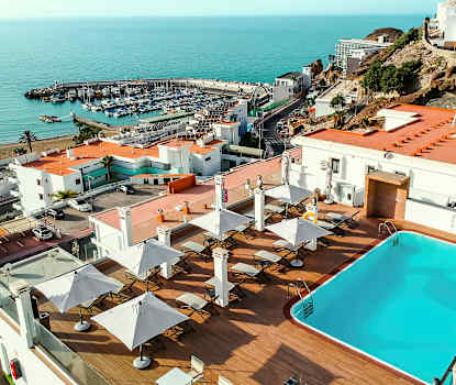 I Puerto Rico findes en 400 meter lang, hesteskoformet sandstrand med en bølgebrydende mole i hver ende. Den lavvandede strand er velholdt og består af lyst finkornet sand, og der tilbydes både vandsport og forskellige aktiviteter. Ved siden af stranden findes en mole med udlejning af liggestole. Langs den lille strandpromenade ligger der flere frokostrestauranter.