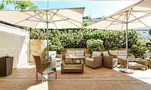 Hotellets to bygninger Casamonte og Casamar adskilles af en gade.