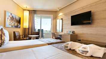 - I værelsestypen indgår konceptet UP!, der inkluderer halvpension (morgenmads- og aftensmadsbuffet) samt adgang til tagterrassen med pool, solterrasse, fri bar og andre faciliteter