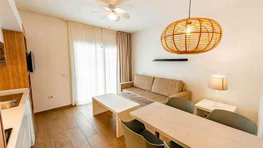 Hotellet tilbyder stilrene lejligheder, og skal ferien være ekstra bekvem, kan du tilkøbe halvpension eller All Inclusive hjemmefra.