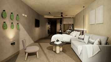 Harmoniske værelser og juniorsuiter, indrettet i jordnære farver og naturmaterialer inspireret af Tenerifes natur.