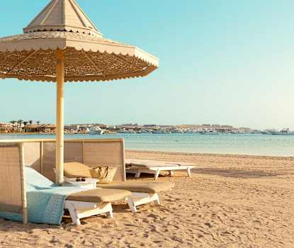 De fleste hoteller har private strande med egne liggestole og parasoller. Er du til vandsport, er der også masser af muligheder. Prøv f.eks. en bådtur, snorkeltur, windsurfing, dykning, eller tag et dykkerkursus. Hvis du ønsker det, kan du besøge strandene ud for andre hoteller ved at betale en afgift. Der findes også enkelte offentlige strande, hvor egypterne selv kommer. Her er der ingen faciliteter, men du skal alligevel betale et mindre beløb for at få adgang.