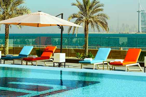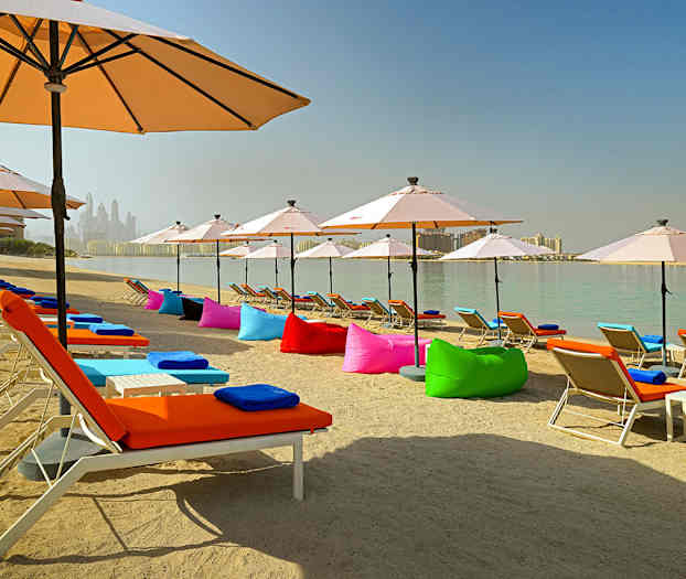 Aloft Palm Jumeirah er et lækkert indrettet hotel med en god beliggenhed tæt på stranden længst ude på Jumeirah Beach og med herlig udsigt over Burj Al Arab og byen.