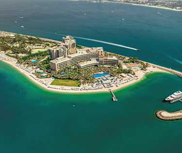 Elegant indrettede juniorsuiter med opholdsstue og soveværelse. Udsigt over Palm Jumeirah eller de smukke haver, der omgiver resortet.