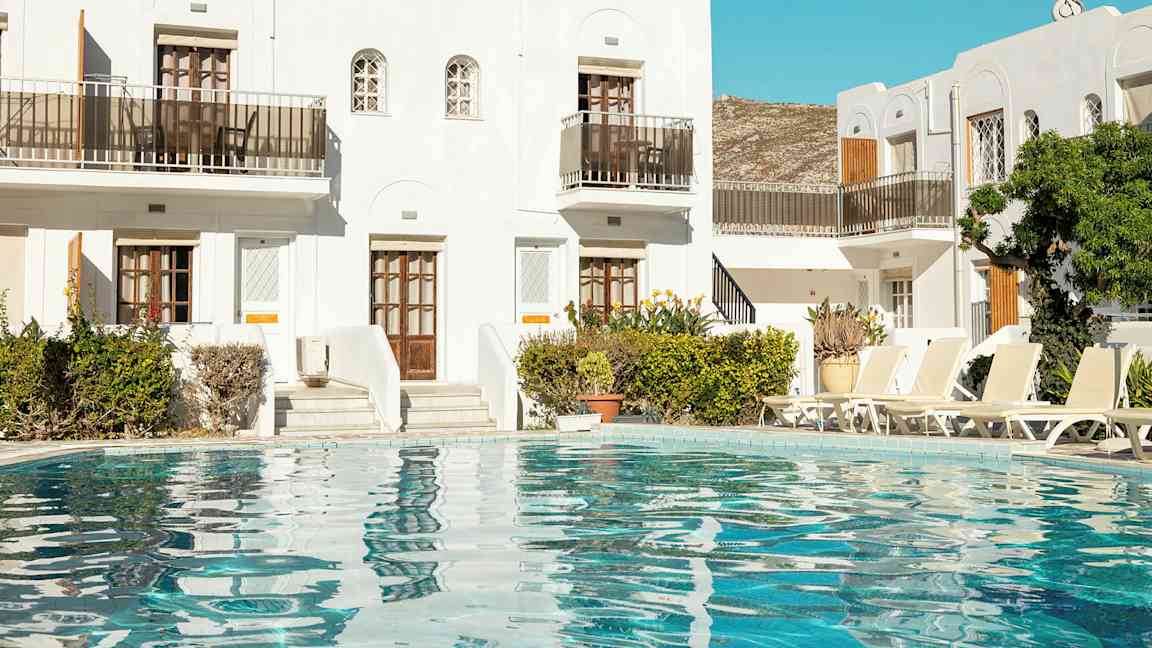 De fleste af Spies' hoteller på Kalymnos er små og familieejede med et lille antal værelser eller lejligheder, hvilket skaber en hyggelig og meget lokal stemning. Hvis I er en større familie eller en gruppe, som rejser til Kalymnos, anbefaler vi hotel Massouri Beach, som ligger lige ud til stranden og tilbyder lejligheder til op til seks personer.
