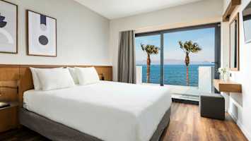 Hotellet har et indbydende poolområde, hvor du kan slappe af i en liggestol og nyde forfriskende dyp i poolen. Vil du bade i havet, har Kos Divine Hotel & Suites en privat del af stranden med liggestole og parasoller tværs over gaden fra hotellet.
