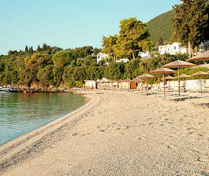 En idyllisk strand i Porosbugten. Her er en restaurant samt mulighed for at leje liggestole og parasoller. Ca. 15 km fra Nidri.Vasiliki