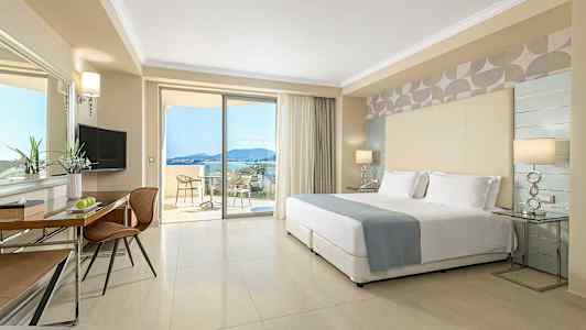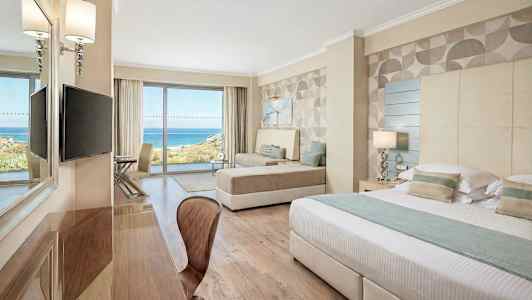 Atrium Platinum tilbyder pæne dobbeltværelser og familieværelser med plads til op til fem personer, og vil du bo ekstra bekvemt, kan du bestille et dobbeltværelse med privat pool.