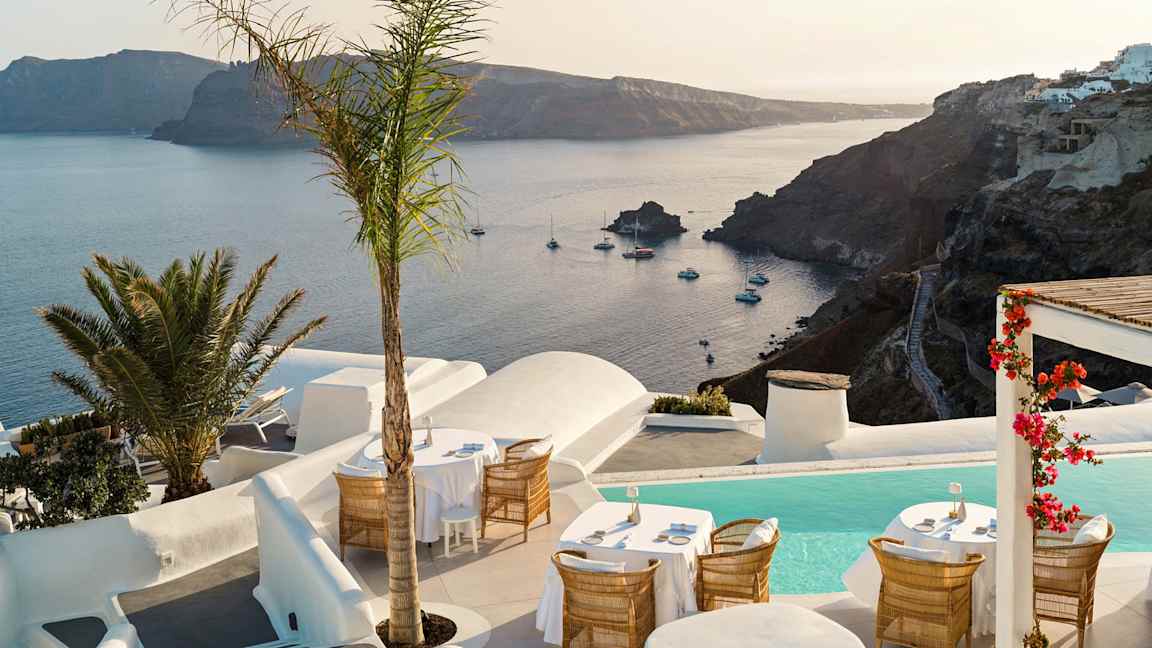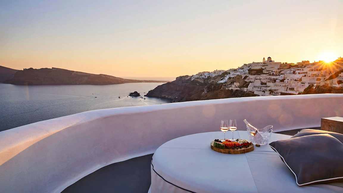 Når du bestiller din rejse til Oia med Spies, kan du vælge mellem flere hoteller i forskellige prisklasser. På voksenhotellet Kirini Suites & Spa bor du på et lille, eksklusivt hotel med traditionel græsk stil og lækkert design. Det perfekte valg for dig, der rejser uden børn.