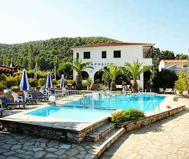 Afrodite Hotel har en pool for voksne og en for børn. Fra hotellet er der cirka 100 meter til den nærmeste strand; rullestensstranden Panormos.