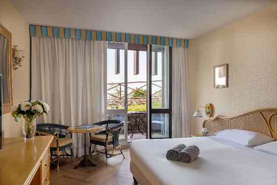 Hotellet tilbyder værelser, som alle rummer en altan eller terrasse, og størstedelen indeholder et badekar og typisk middelhavsindretning. Tilmed er der også regulerbar radiator og klimaanlæg, telefon, dobbeltseng, fladskærmsfjernsyn med betalings-tv, minibar, hårtørrer, safeboks, badekåbe, hjemmesko og en stor garderobe som standardindretninger på værelset. Ydermere er der eget badeværelse med brusebad, hårtørrer og toiletartikler. Der står oven i købet en ikke-rygeretage til rådighed.