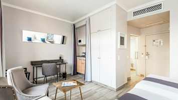 Ved stor efterspørgsel kan der forekomme andre værelses-/lejlighedstyper til salg end dem, der vises under fanebladet ”Sådan bor du”. Dette giver os mulighed for at tilbyde endnu flere værelser/lejligheder på hotellet.