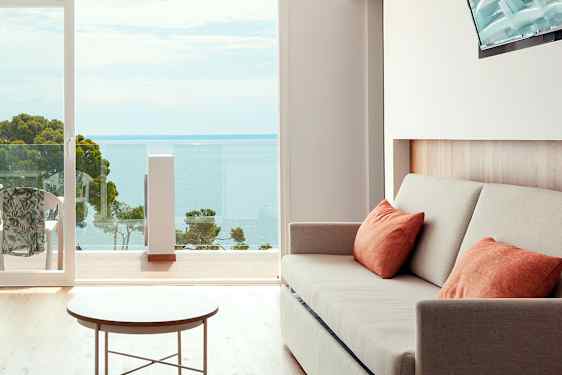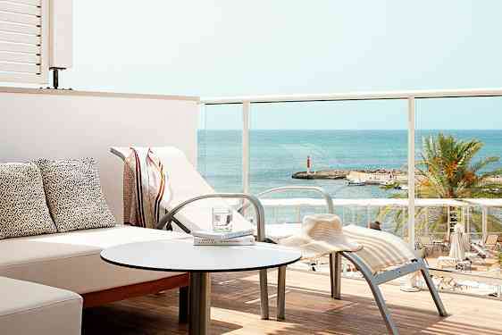 Perfekt beliggenhed, tæt på lufthavnen, og lige ved havet med en dejlig strandpromenade. Hotellet ligger også nær Palma by, og det er let at komme dertil med bil, bus eller cykel. Sunprime Waterfront er enormt funktionelt og vedligeholdt. Sidste år fotograferede jeg hotellets nye balkoner på 1. og 5. etage. Værelserne har fået en ny udendørs "stue" med sofaer og solsenge - vi elsker jo at være ude!