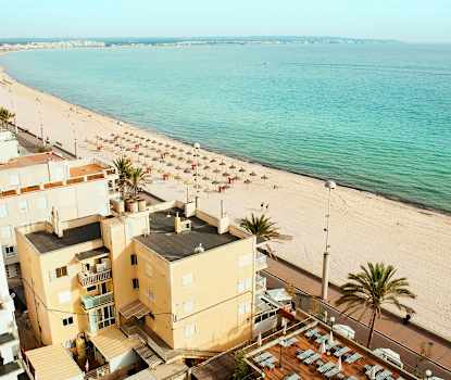 Den lange og velholdte sandstrand Playa de Palma er den bedste i hele Palmabugten. Den 50 til 100 meter brede strand strækker sig over 5 km fra udkanten af Palma. At her er så pænt, rent og velholdt skyldes, at stranden er opdelt i 15 mindre områder, de såkaldte balnearios. Hver balneario har sine egne barer, omklædningsrum, toiletter og brusebade. De servicemindede bademestre gør alt for, at netop deres bid af stranden skal være den mest attraktive. Ved stranden kan du prøve vandsportsaktiviteter som windsurfing, vandcykler og jetski. Her er desuden mulighed for at leje liggestole og parasoller. På strandpromenaden og på dens sidestrøg finder du udeserveringer, pubber, butikker og diskoteker.