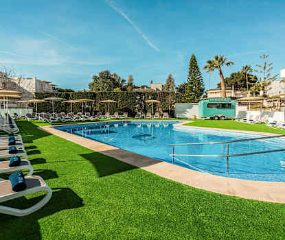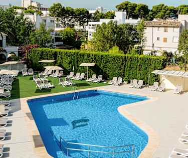 På THB Maria Isabel kan du slappe af i en liggestol på det hyggelige poolområde.