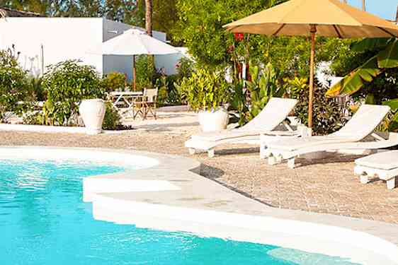 Dhow Inn er et lille og hyggeligt boutiquehotel med en afslappet atmosfære og perfekt beliggenhed tæt på stranden i den lille fiskerby Paje på Zanzibars sydøstkyst. Hotellet har fire poolområder med liggestole og parasoller omgivet af blomster og palmer.