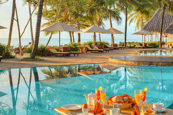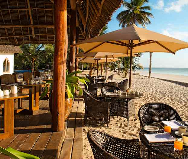 Sultan Sands Island Resort er et harmonisk hotel med perfekt beliggenhed direkte på den smukke sandstrand på Zanzibars østkyst. Her kan du nyde en afslappende ferie i rolige omgivelser, hvor stemningen er lokal og både indretning og mad har et afrikansk præg. Hotellet har en smuk tropisk have med vajende palmer og havet som nærmeste nabo. Der er tre pools på området, der indbyder til afslappende stunder i en liggestol under en parasol. Hvis du foretrækker at bade i havet, er der blot et par skridt til den kridhvide sandstrand og det salte, turkisblå hav.