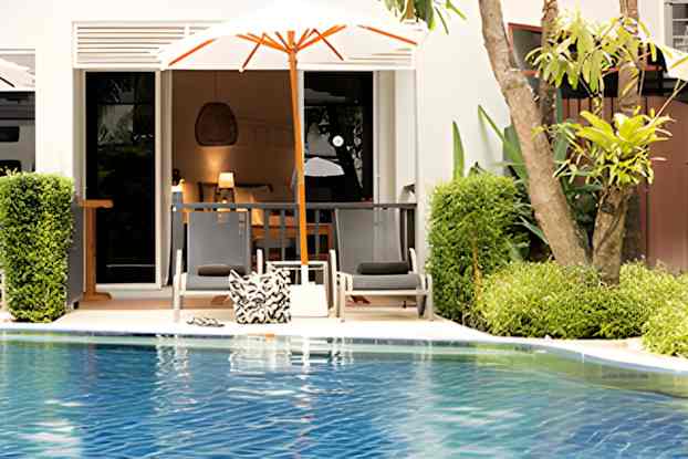 Det skønne poolområde på Sunwing Bangtao Beach er omgivet af palmer og omfatter seks pools, hvoraf den mest populære er den store familiepool på 1.340 m2, som bugter sig og har en lille ø.