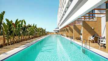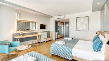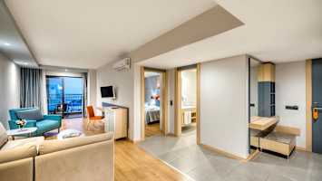- Denne værelsestype har en anbefalet minimumsaldersgrænse på 6 år, da den nemme adgang til poolen kan udgøre en sikkerhedsrisiko for børn, der ikke kan svømme. Det er derfor ekstra vigtigt, at man holder opsyn med børnene.