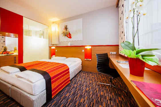 Lige over for city-hotellet ligger Budapests østlige hovedbanegård, Keleti pályaudvar. Hotellets beliggenhed gør det til det perfekte valg for både forretningsrejsende og feriegæster på besøg i Budapest. Til centrum af Budapest er der 1,5 km fra city-hotellet, og gæsterne vil kunne finde forbindelser med offentlige transportmidler og busstationen lige i nærheden. Endvidere er der 2 km til en række mødesteder med natteliv, og af nærliggende seværdigheder bør nævnes Buda Slot (7 km væk), gaden Váci (3 km væk), byens park (1 km væk) og floden Donau (3 km væk). Desuden ligger den internationale lufthavn (Ferihegy) inden for 30-40 minutter med taxa eller lufthavnsbus, og der er også en god offentlige transportforbindelse til lufthavnen.
